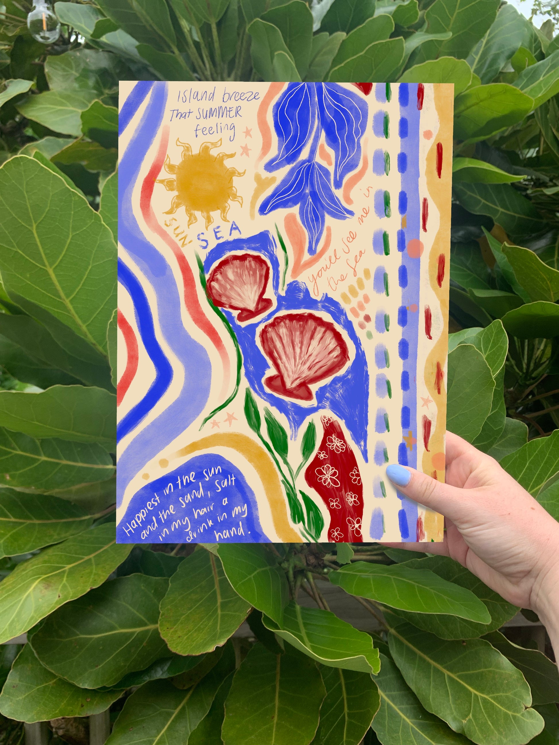 Inspired by Island escapes, a cold drink and cerulean blue oceans, this is the perfect print for summer.